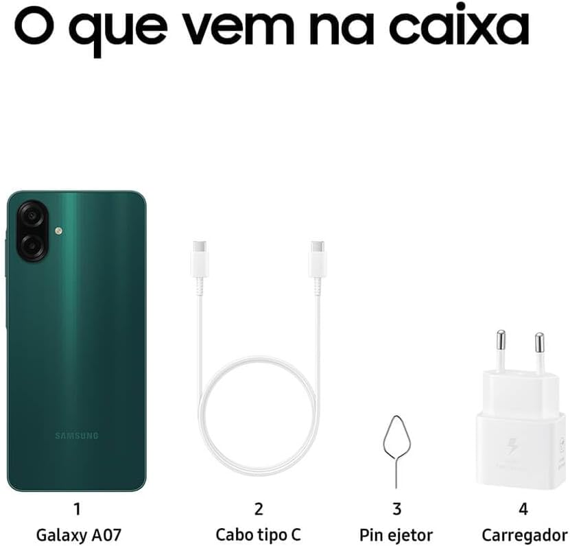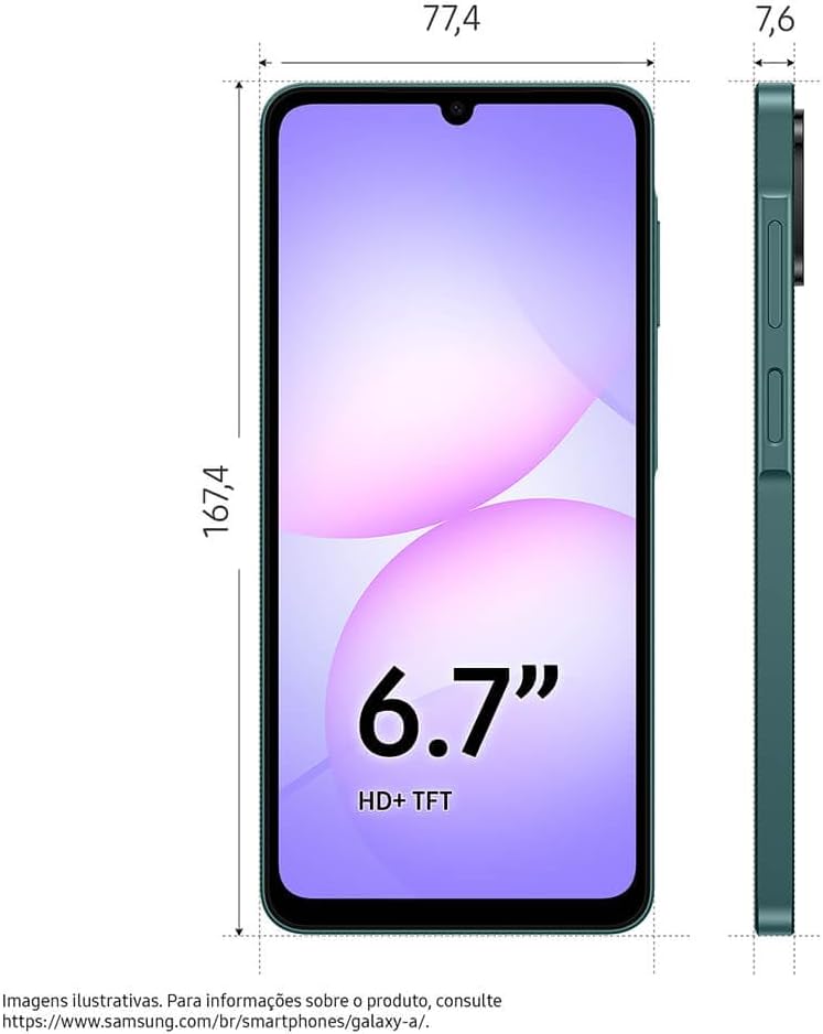 Celular Samsung Galaxy A07 256GB, 8GB, Câm. 50MP, Tela 6.7″ – Verde