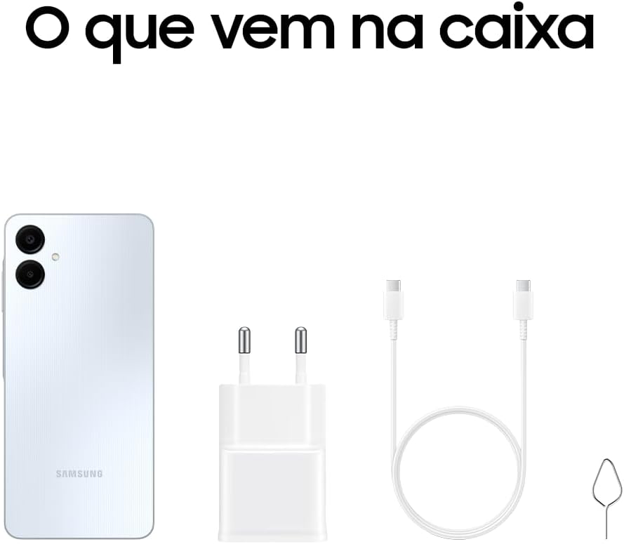 Smartphone Samsung Galaxy A06 128GB, 4GB RAM, Processador Octa-Core, Bateria de 5000mAh, Tela Infinita de 6.7″, Câmera Traseira Dupla, Dual Chip – Branco